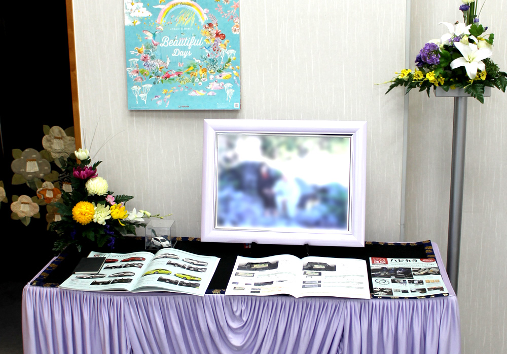 葬儀会場では、生前のお写真や洋服、故人の好きだったものを飾り、「思い出コーナー」または「メモリアルコーナー」をおつくりすることが可能です。